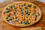 Our tomato & herb red sauce blend, with mozzarella cheese, garlic, green chili's, ginger, mushroom, red onion, green bell pepper, black olives, diced tomato, paneer and fresh cilantro.